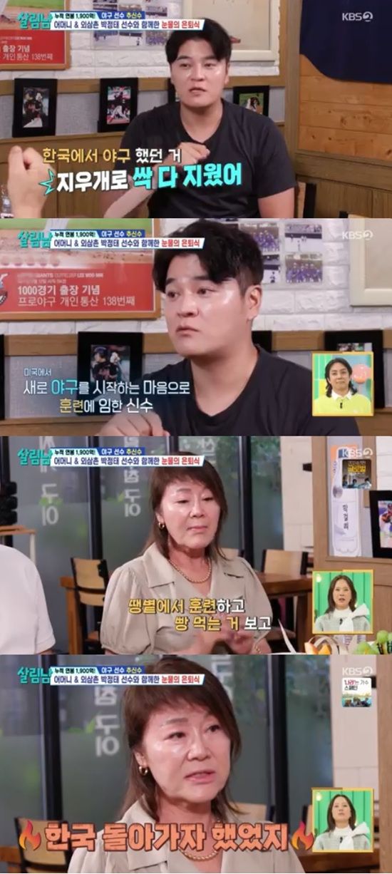 추신수 어머니는 미국생활 당시 아들이 땡볕에서 빵만 먹으며 훈련하는 것을 보고 당장 한국으로 돌아가자는 얘기를 했었다고 말했다.