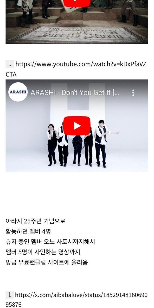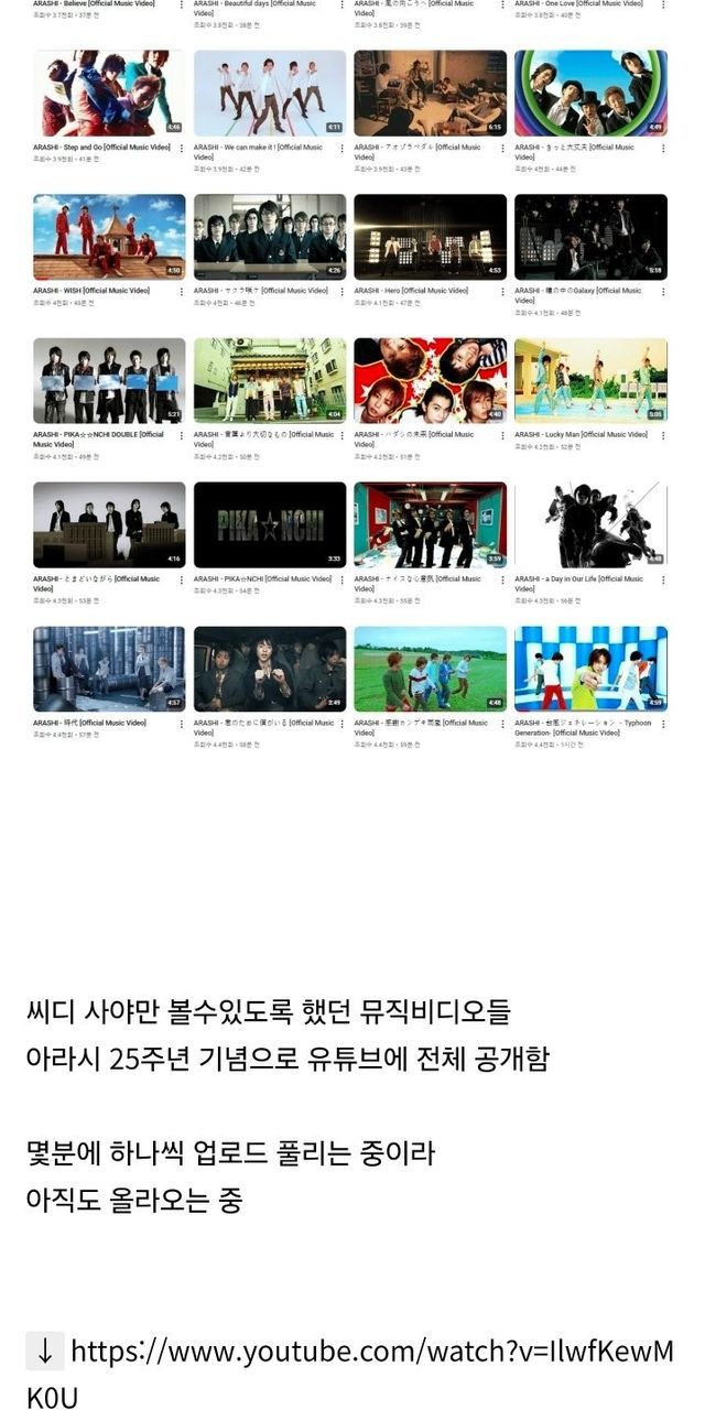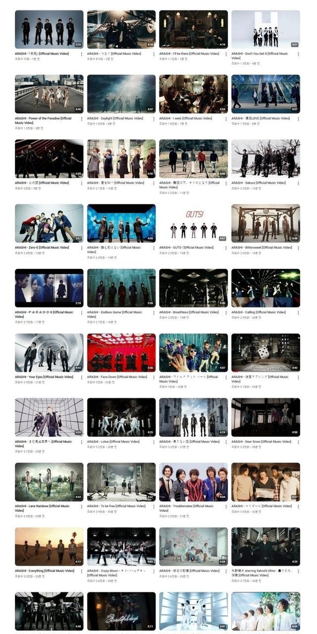 출처 : 아라시 25주년 기념으로 유튜브에 유료컨탠츠던 20년간의 뮤직비디오 전체 공개됨