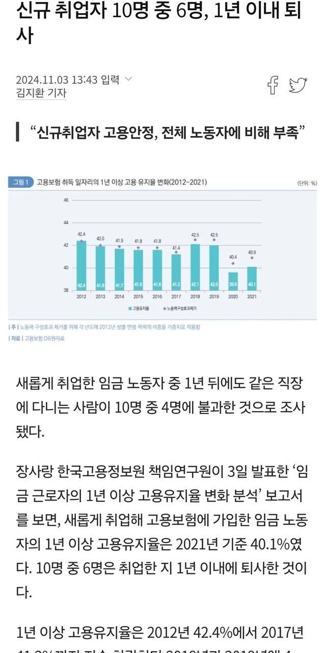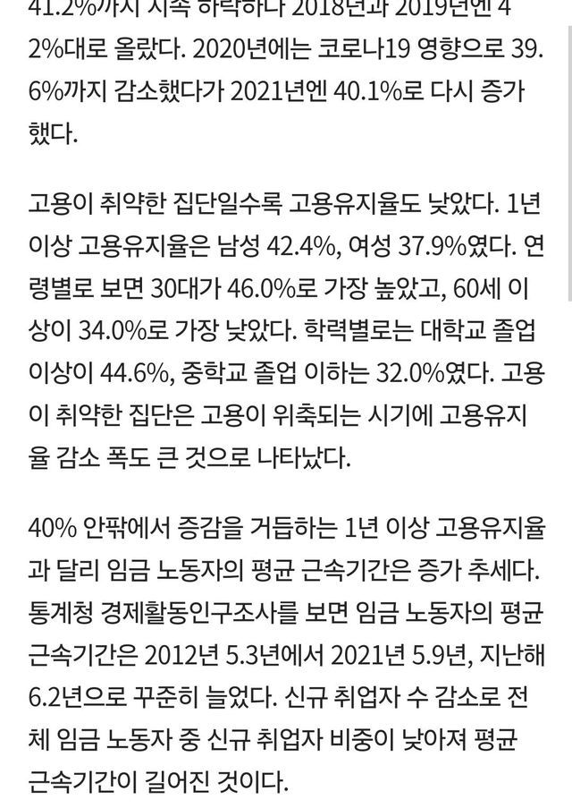 신규 취업자 10명 중 6명, 1년 이내 퇴사