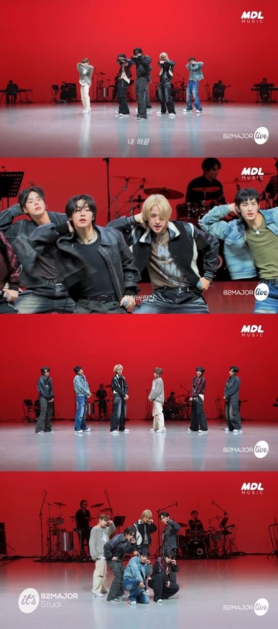 82메이저(남성모·박석준·윤예찬·조성일·황성빈·김도균)는 지난 2일 '잇츠라이브(it's Live)' 공식 유튜브 채널을 통해 미니 2집 'X-82(엑스-82)' 타이틀곡 '혀끝(Stuck)' 라이브 무대를 꾸몄다.