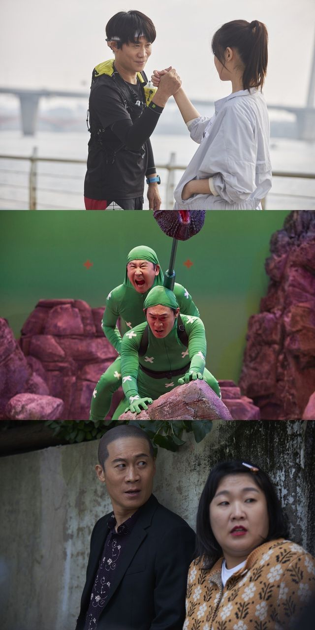 경력직 러닝 크루로 ‘빤스런’ 동호회에 합류한 진선규는 오직 러닝에 진심인 크루로 등장해 그 어떤 플러팅이나 딴짓도 허용하지 않는 모범 크루를 완벽히 연기했다. 그런 그가 뒷풀이 회식 자리에서는 돌연 술게임 중독자로 변신하며 누구보다 플러팅에 진심인 대반전 모습을 선보여 폭소를 자아냈다. 이어 ‘배우’ 진선규 자체로 등장한 코너에서는 쫄쫄이를 입고 그린 매트 위를 누비는 괴수를 연기하며 상대 배역 신동엽과 역대급 아찔한 19금 코미디를 선보여 무대를 뒤집어 놓았다.