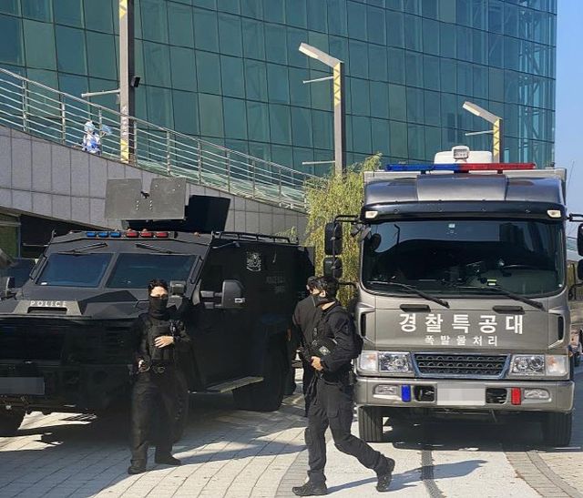 경찰 특공대와 군부대 폭발물 처리반이 출동해 행사장 안팎을 수색한 결과 폭발물은 발견되지 않았다.