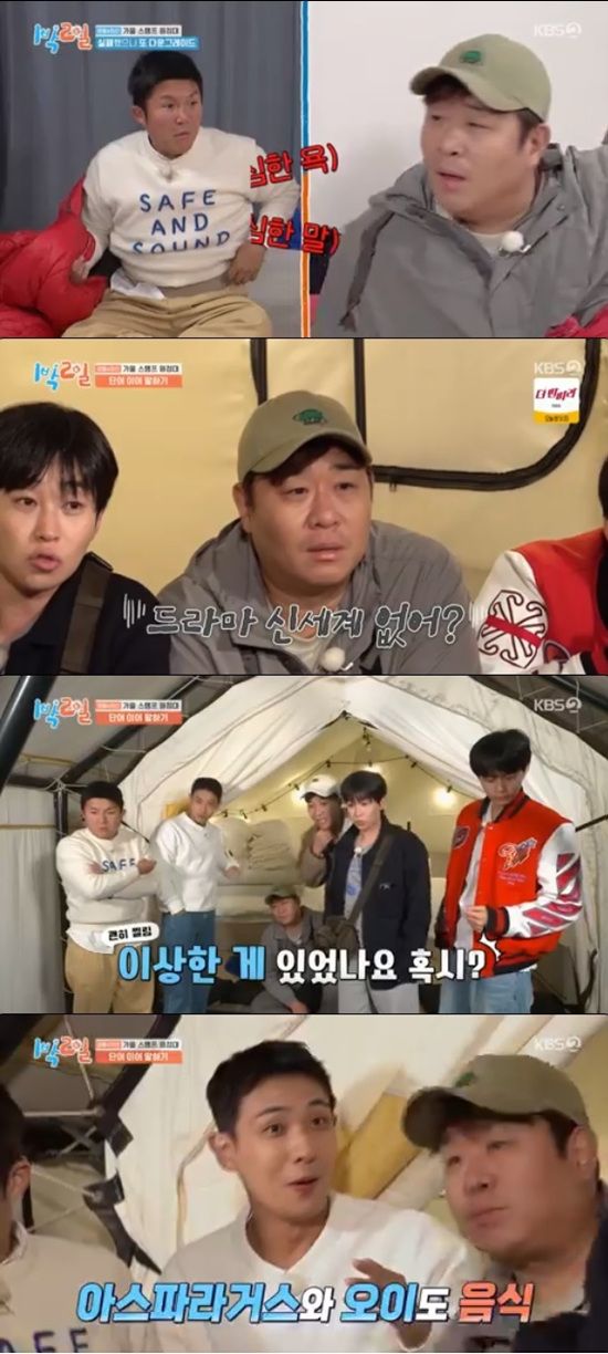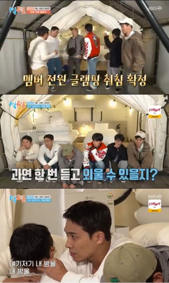 멤버들은 마지막으로 음식 이름 이어말하기에 도전해 성공하며 글램핑 텐트 취침을 확정지었다.