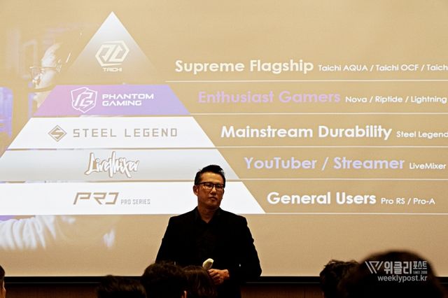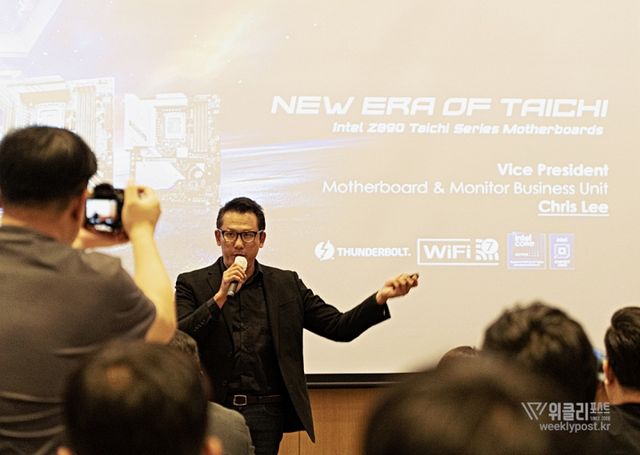 두 번째 연사는 ASRock에서 메인보드와 그래픽카드를 담당하고 있는 Chris Lee VP가 나섰다. 크리스 VP는 Z890 메인보드 시리즈의 특장점과 세분화된 라인업을 설명했다. 새롭게 공개한 Z890 메인보드는 Thunderbolt 4 지원, PCIe 5.0 슬롯 제공, CPU와의 직접 연결을 통한 빠른 데이터 전송 등의 기능을 갖췄다. 특히 ASRock은 자사 메인보드 라인업을 새롭게 정의 했는데 Supreme Flagship(최상위 플래그십), Enthusiast Gamers(열정적인 게이머), Mainstream Durability(메인스트림 내구성), YouTuber / Streamer(콘텐츠 크리에이터), General Users(일반 사용자)의 다섯 가지 카테고리로 세분화했다.