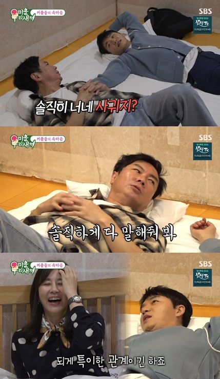 그는 이야기를 마친 후 궁금한 게 있다며, "솔직히 너네 사귀는 거 맞지? 결혼까지 가는 거야?"라고 직구를 날렸다.