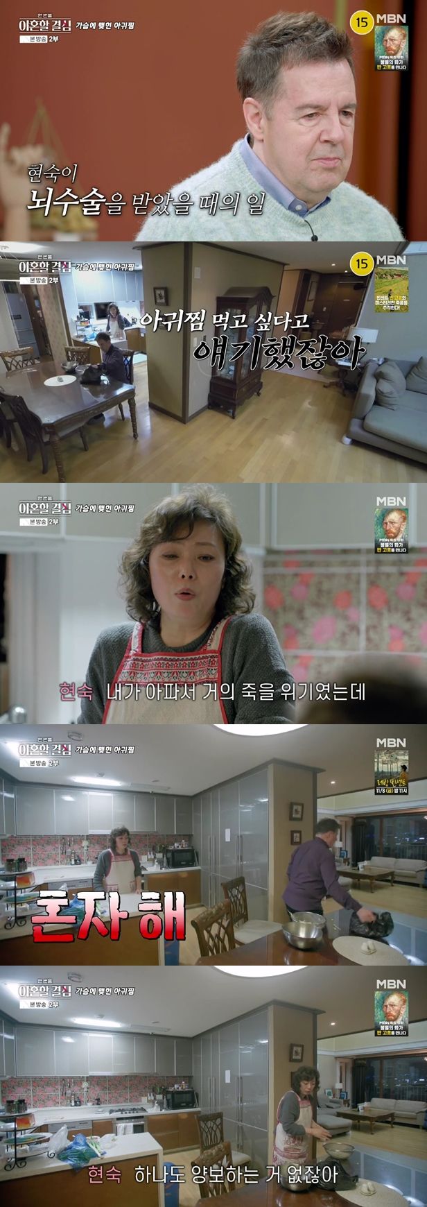 이날 명현숙은 "내가 전에 뇌 수술 하려고 했을 때 생각나냐"고 말해 놀라게 했다.