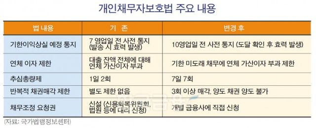 지난 달 시행된 개인채무자보호법 하위규정에 채권 양도를 제한하는 조항이 포함됐다.
