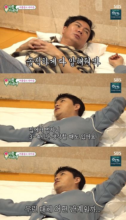 그는 이야기를 마친 후 궁금한 게 있다며, "솔직히 너네 사귀는 거 맞지? 결혼까지 가는 거야?"라고 직구를 날렸다.