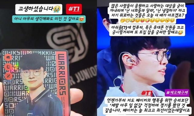 이날 T1은 중국리그 1위팀 BLG를 꺾으며 2년 연속 ‘월즈’의 챔피언이 됐다. 결승전에서 페이커는 ‘월즈’ 최초로 500킬을 돌파했고 결승전 MVP까지 차지하는 맹활약을 펼쳤다. 하지만 T1은 올해 리그 경기에서 잠깐 흔들려 4위의 성적으로 ‘월즈’에 가까스로 진출했다. 더불어 T1이 리그에서 젠지를 상대로 10연패를 당한 후 온라인에서 페이커가 벽을 향해 자신의 머리를 내던지는 영상이 공유돼 팬들의 걱정이 더 커졌던 상황이었다.