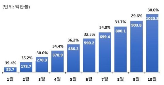 이는 지난해 라면 연간 수출액인 9억 5200만 달러를 10개월 만에 달성한 것이다.