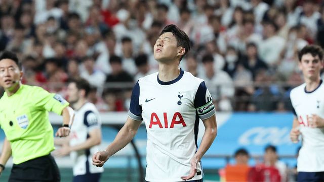 토트넘 손흥민이 지난 8월 3일 서울 마포구 상암동 서울월드컵경기장에서 열린 쿠팡플레이 시리즈 잉글랜드 프리미어리그 토트넘 홋스퍼와 독일 분데스리가 바이에른 뮌헨의 경기에서 슛이 빗나가자 아쉬워하고 있다 / 뉴스1