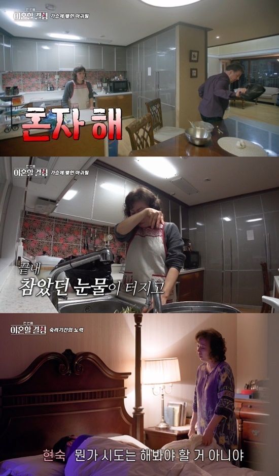 이어 아귀찜 재료를 사와 함께 만들자고 했지만 할리는 콩나물을 다듬다가 짜증을 내며 방으로 들어갔다. 명현숙은 그런 남편에게 "내가 왜 아귀찜을 만드는지 생각은 안 해봤냐"며 오열했다.