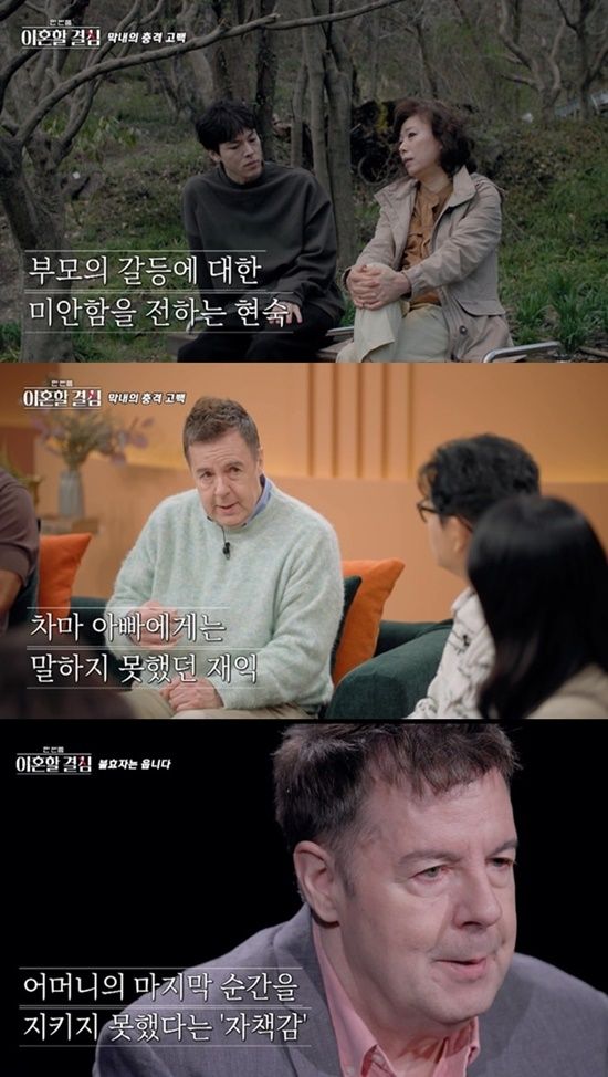 (엑스포츠뉴스 김유진 기자) MBN '한 번쯤 이혼할 결심'의 정대세와 로버트 할리가 세상을 먼저 떠난 부모를 떠올리며 회한의 눈물을 쏟는 한편, 부부 갈등을 봉합하기 위해 노력하는 모습을 보여줘 시청자들의 공감을 샀다.