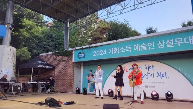 이날은 ‘2024 기회소득 예술인 상설무대’의 10번째 정기공연 날이었다. 아이들과 함께 나들이 나온 가족, 손을 잡고 산책 중인 중년부부, 친구들과 박수치며 공연을 즐기는 중고생까지 모두가 웃음을 머금으며 무대를 바라봤다.
