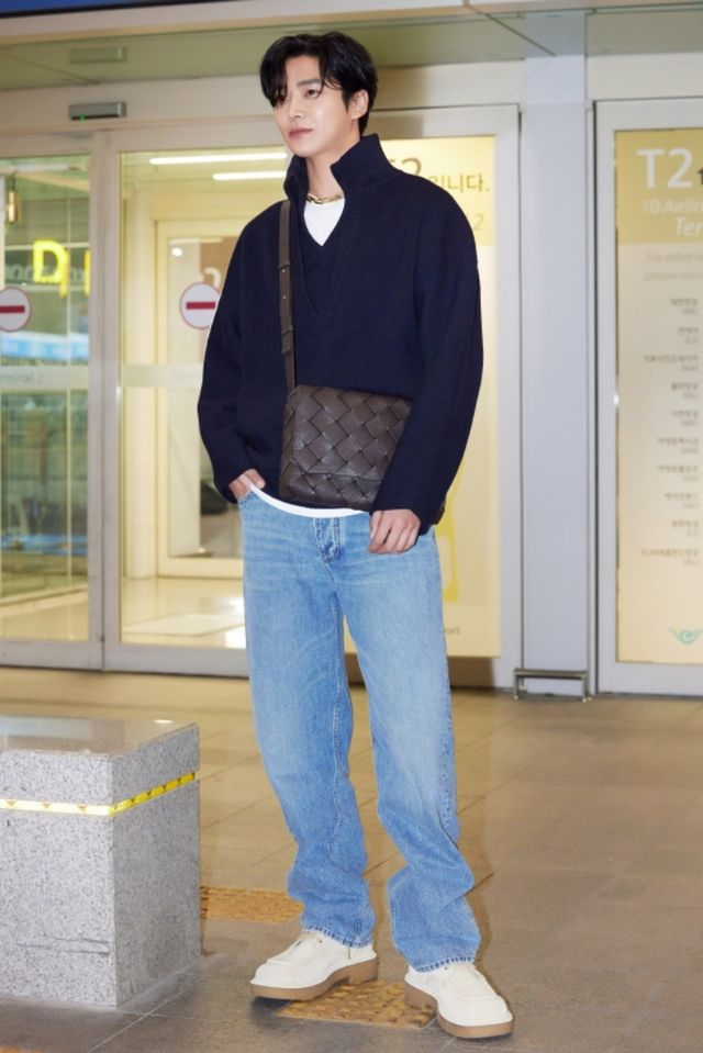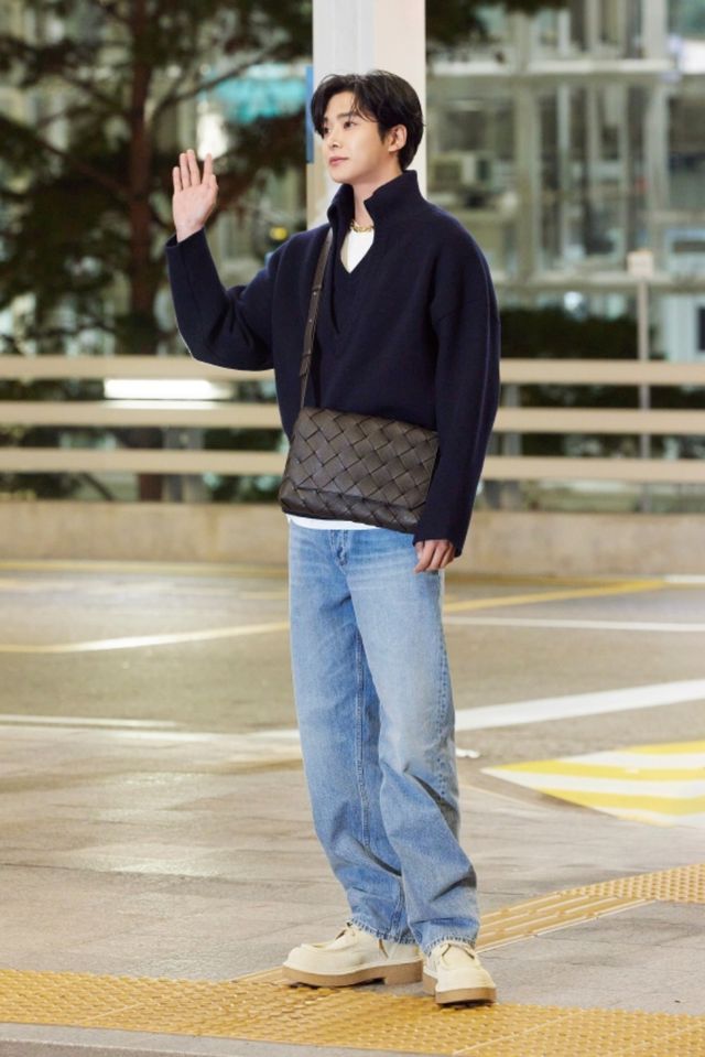 이날 로운은 보테가 베네타의 더블 레이어 네크 라인이 돋보이는 울 소재의 니트 점퍼와 빈티지 무드의 와이드 데님 팬츠, 그리고 해드독 레이스업 앵클 부츠를 착용하여 캐주얼하면서도 세련된 가을 룩을 연출하며 시선을 사로잡았다. 특히, 25 봄 컬렉션에서 새롭게 출시된 라지 사이즈의 디아고 백을 더해 한층 더 완벽한 공항 패션을 완성했다.