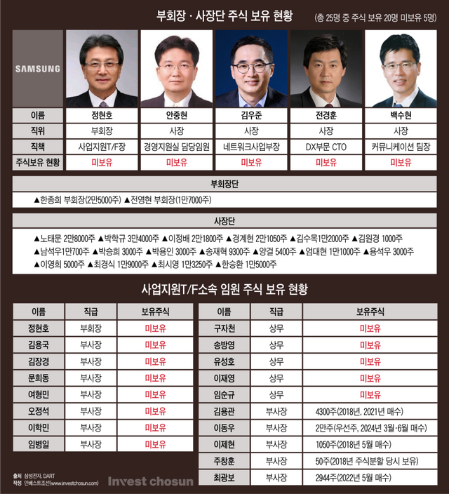 정현호 부회장 등 사업지원TF 임원 2/3는 삼성전자 보유주식 無…최근 자사주 매입참여 0%