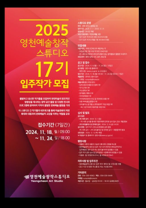 | ▲ 2025 영천예술창작스튜디오 17기 입주작가 모집 홍보 포스터 |