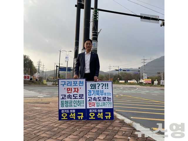 경기도의회 문화체육관광위원회 오석규 의원(민주, 의정부4)은 11월 1일, 4일 이틀간 구리-포천 고속도로 통행료 인하와 요금 체계 개선을 요구하며 1인 피켓 시위를 진행했다.