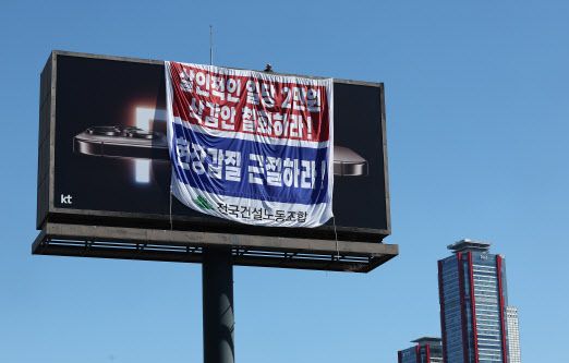 앞서 서울 영등포경찰서는 지난달 31일 업무방해와 건조물 침입 등의 혐의로 건설노조원 2명을 검거했다. 경찰에 따르면 피의자들은 지난달 2일부터 서울 영등포구 여의도 인근 70m 높이의 광고탑에 올라가 사측에 내년 임금 삭감안 철회와 교섭 재개. 건설노동자 고용입법안 제정 등을 요구했다.
