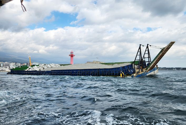 4일 서귀포해양경찰서에 따르면 이날 오전 11시59분께 서귀포항 동방파제 입구에서 부선 A(2213t·인천·승선원 1명)호의 좌초가 의심된다는 신고가 접수됐다.