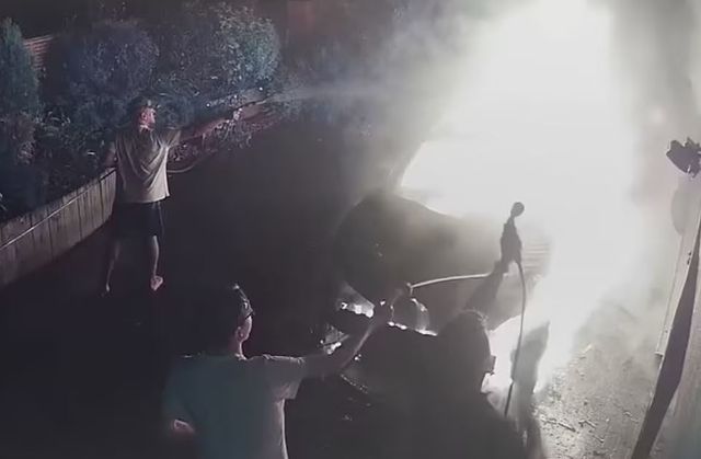 불길 확인 직후 차량 소유주인 스콧 베일리스를 포함한 가족들, 이웃까지 동원돼 소방 호스를 들고 화재 진압에 나섰다. 곧이어 소방차가 도착했고, 화재는 한참 뒤에야 완전 진화됐다. 다행히 차량에서 난 불이 집까지 번지지는 않았다고 한다.