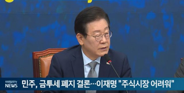 이재명 더불어민주당 대표는 오늘(4일) 국회에서 열린 당 최고위원회의에서 “정부와 여당이 밀어붙이는 금투세 폐지에 동의하기로 했다”고 밝혔습니다.