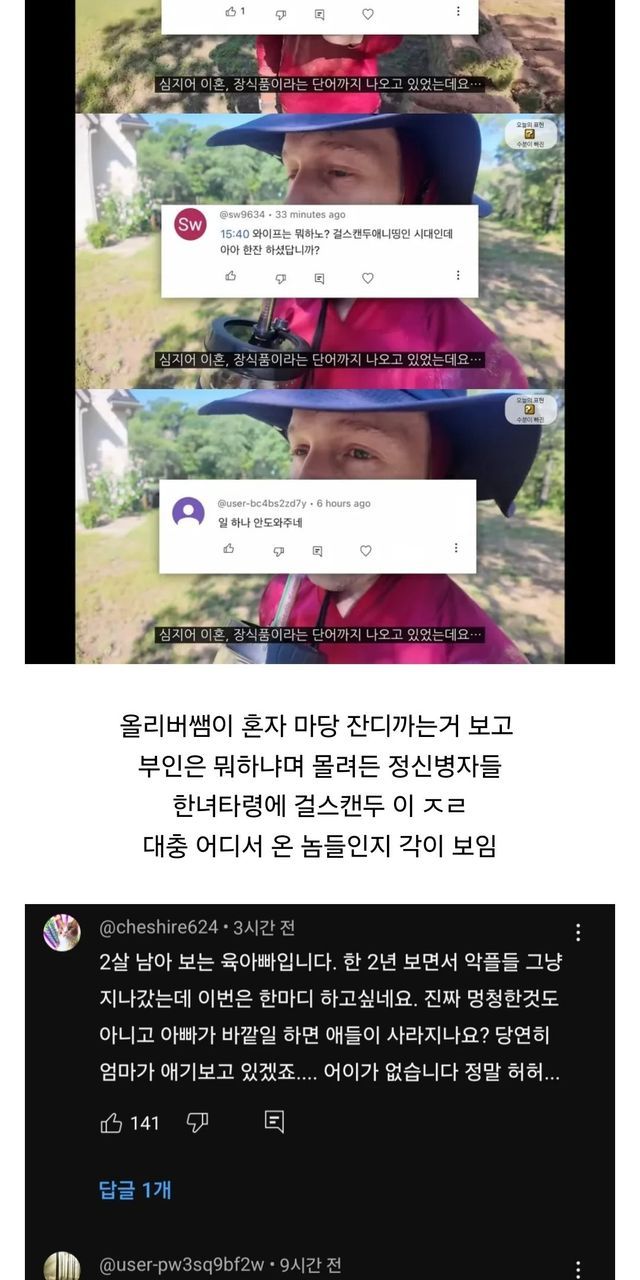 성별 바뀌었으면 꼴페미했을 븅신들이 올리버쌤 공격함