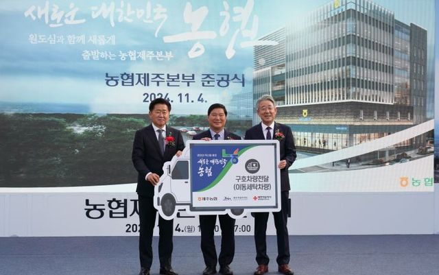 농협제주본부는 또 통합 신청사 준공을 기념해 대한적십자사 제주도지사에 3.5t의 이동 구호차량을 지원했다. 또 5일에는 지역주민 250여 명을 초청해 국수와 수육 등 점심식사를 제공할 예정이다.