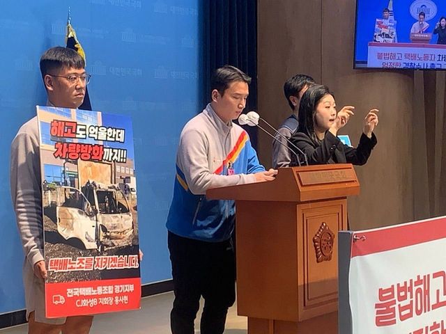 화성노동인권센터에 따르면, 기자회견에 나선 당사자들은 넉 달 전인 지난 7월 4일에도 국회에서 극심한 노조탄압을 고발하며 중단을 촉구한 바 있다. 앞선 10월 4일 새벽, 홍사현 지회장의 택배차량이 터미널에서 의도적인 방화로 인해 전소되어 버린 일이 발생했다. 경찰의 수사 결과 방화범으로 지목된 자가 노조탄압 주도자였던 신향남대리점 소장의 최측근 지인으로 밝혀졌다.