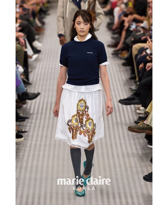 4 SCENE-STEALER 최근 브랜드의 ‘K-뮤즈’들이 쇼에 참석하는 것을 넘어 런웨이에 직접 모델로 나서 화제를 모으는 중이다. 이번 시즌 파리 무대를 빛낸 셀럽은 미우미우 쇼에 깜짝 등장한 (여자)아이들 민니, 그리고 므아므 쇼에 선 몬스타엑스 셔누.