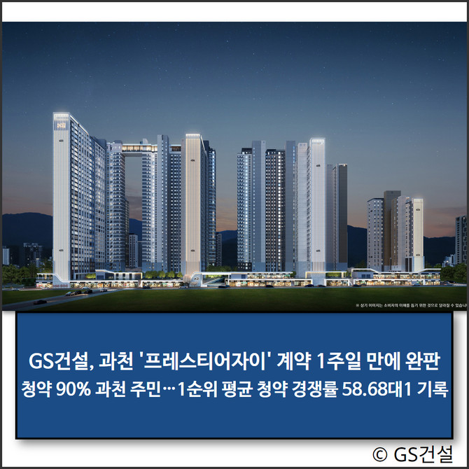 GS건설(006360)이 선보인 경기 과천시 별양동 '프레스티어자이'가 최근 진행된 정당계약과 예비당첨자 계약에서 전 가구 완판(완전 판매)됐다.