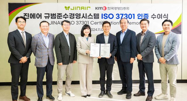 진에어가 국경영인증원(KMR)으로부터 LCC 최초로 규범준수경영시스템 국제 표준인 ISO 37301 인증을 획득했다. ⓒ 진에어