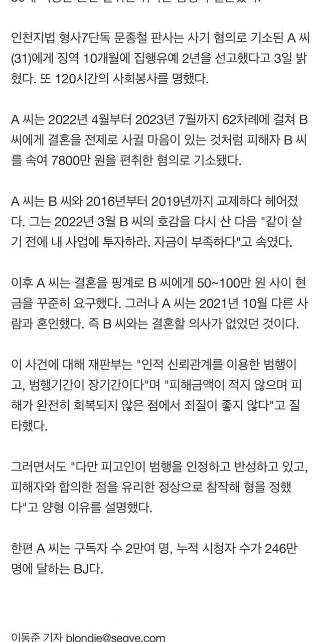 결혼 전제로 속여 수천만원 뜯어낸 30대 한녀 .jpg