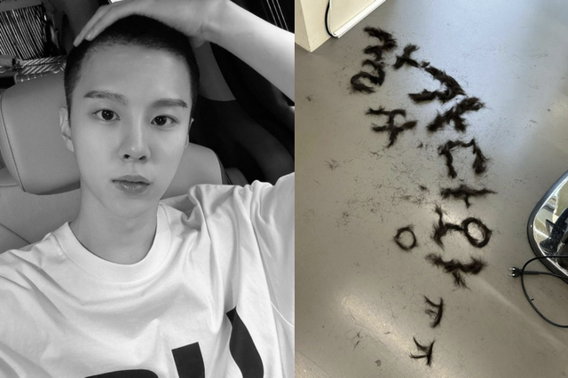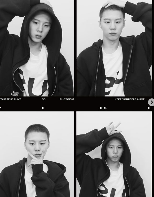 그룹 업텐션, 엑스원 출신 배우 김우석이 입대를 위해 민 머리를 공개했다.