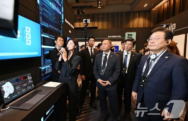 4일 서울 강남구 삼성동 코엑스에서 열린 SK AI 서밋에는 더불어민주당 이재명 대표, 조승래 국회 AI 포럼 대표 연구위원, 김현 과학기술정보방송통신위원회 간사 등이 참석했다.