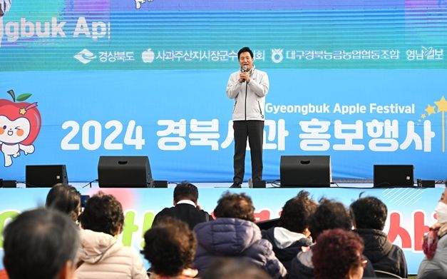 | ▲ 오세훈 서울시장이 4일(월) 15시 40분, ‘2024 경북사과 홍보 행사’에 참석해 환영 인사를 전하고 있다. |