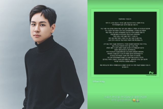 4일 윤남기, 이다은의 소속사 FU(에프유)는 공식 채널에 “지난 10월 31일 공개된 유튜브 채널 ‘밉지 않은 관종언니’ 콘텐츠 내 이다은의 발언에 다소 사실과 다른 부분이 있어 이로 인해 불편함을 느끼셨을 모든 분들과 해당 언론사 및 관계자 여러분들께 진심으로 사과의 말씀을 전한다”라고 입장문을 게시했다.