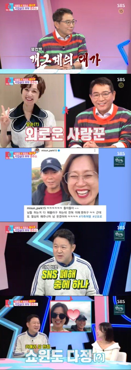 이날 이봉원의 출연에 MC들은 "사랑꾼인데 항상 혼자만 나온다. 외로운 사냥꾼"이라고 놀리면서 웃었다. 그러면서 박미선이 SNS에 이봉원과 함께 다정하게 찍은 영상을 올린 것을 언급하며 물었다.