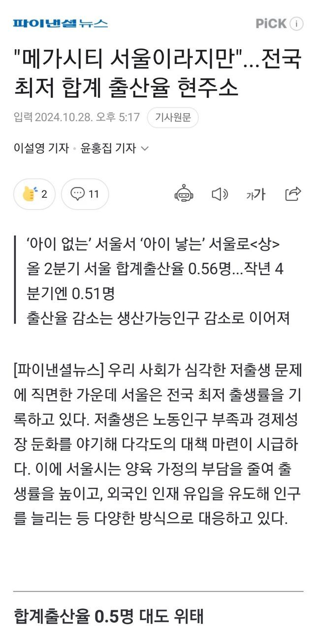 𝟰.결국 서울은 청춘남녀 대부분을 대기업 본사+일자리 몰빵 집중화 구실로 수도권에 몰아넣고도 전국 최저출산율 기록