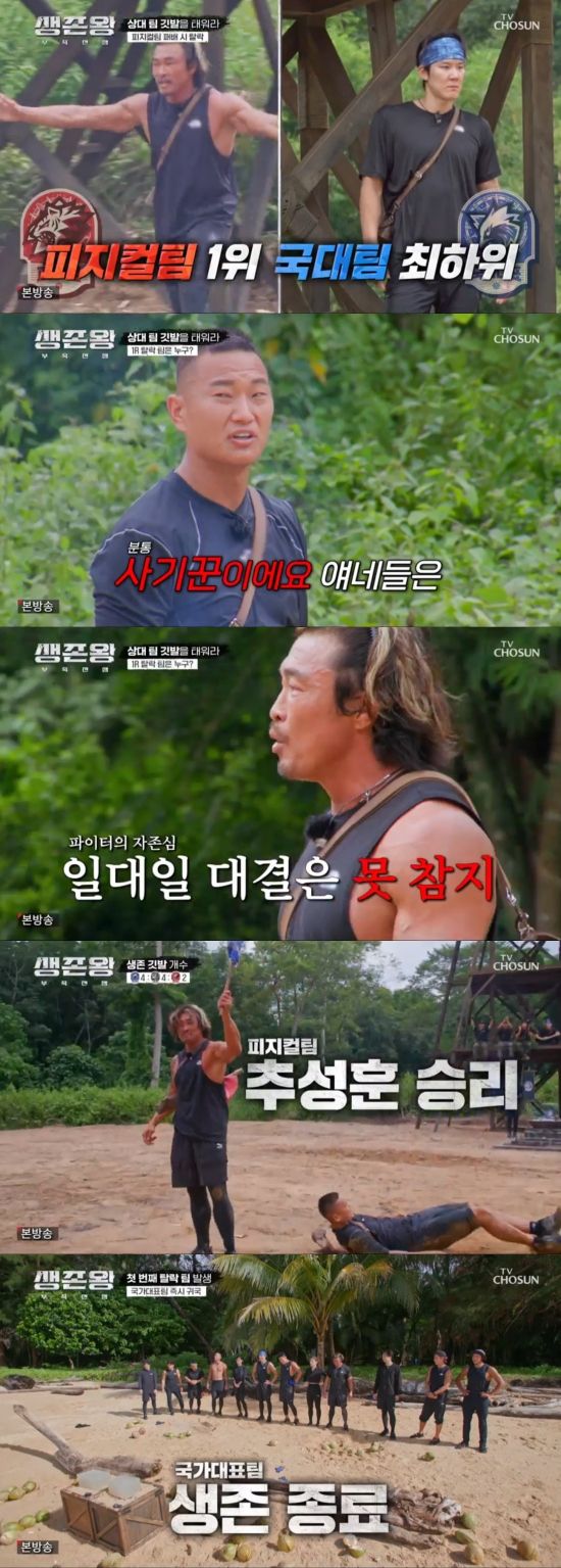 4일 방송된 TV조선 '생존왕'에서는 국가대표팀(박태환, 정대세, 김민지)이 1라운드에서 탈락한 장면이 전파를 탔다.