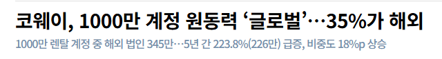 동남아+미국에서 대박이 나면서 렌탈계정의 35%가 해외계정이다.