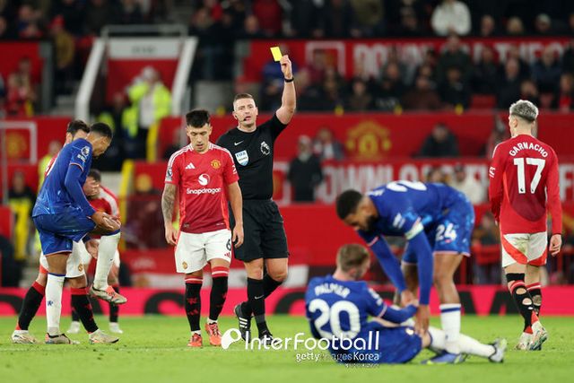 그런데 경기 종료 직전 위험천만한 장면이 나왔다. 볼 경합 상황에서 맨유 수비수 마르티네스가 첼시 콜 팔머에게 태클을 가했다. 팔머가 센스있게 볼을 띄우면서 소유권을 가져갔는데, 마르티네스의 태클은 조금 늦게 들어갔다. 오른발이 너무 높았고, 팔머의 무릎을 내리찍었다. 팔머는 곧바로 그라운드에 누워 고통을 호소했다.
