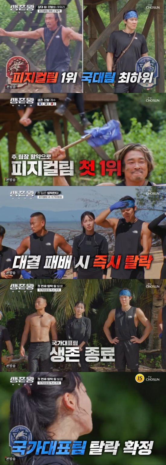 4일 방송된 TV조선 '생존왕'에서는 국가대표팀(박태환, 정대세, 김민지)이 1라운드에서 탈락한 장면이 전파를 탔다.