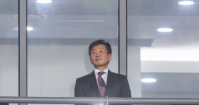 정몽규 대한축구협회 회장이 지난달 15일 오후 경기 용인시 처인구 용인미르스타디움에서 열린 2026 국제축구연맹(FIFA) 북중미 월드컵 아시아 3차 예선 B조 4차전 대한민국과 이라크의 경기를 찾아 경기장을 바라보고 있다. / 뉴스1