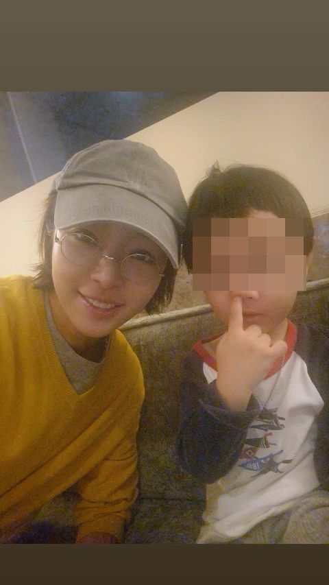 황정음의 아들은 콧구멍에 손가락을 넣고 있는 코믹한 포즈로 웃음을 자아낸다.