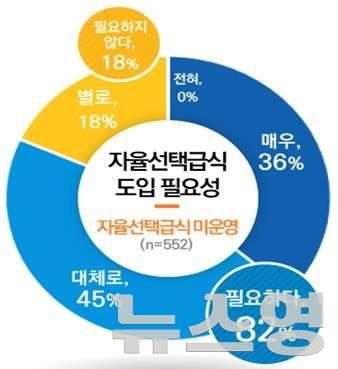 또한 운영교 학생 96%가 자율선택급식을 계속 운영해야 한다고 긍정 응답했으며, 미운영교에서도 학생 82%가 자율선택급식 도입이 필요하다고 공감했다.