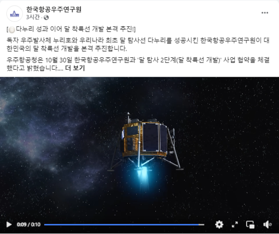 ▲ 한국우주항공연구원 페이스북 화면 갈무리 |
