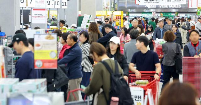 롯데쇼핑 창사 45주년을 맞아 쇼핑 대축제 '땡큐절'이 진행되고 있는 지난 3일 서울 용산구 롯데마트 서울역점이 손님과 관광객들로 붐비고 있다. / 연합뉴스