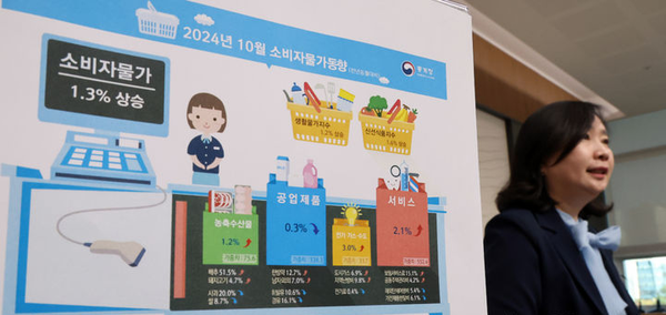 공미숙 통계청 경제동향통계심의관은 "10월 물가동향은 전년 동월비 채소·외식 상승폭이 확대됐지만 석유류·과실 하락폭이 확대돼 1.3% 상승했다"며 "3년 9개월 만에 최저 상승이고 두 달 연속 1% 상승률을 기록한 것은 2021년 2~3월 이후로 처음"이라고 설명했다.