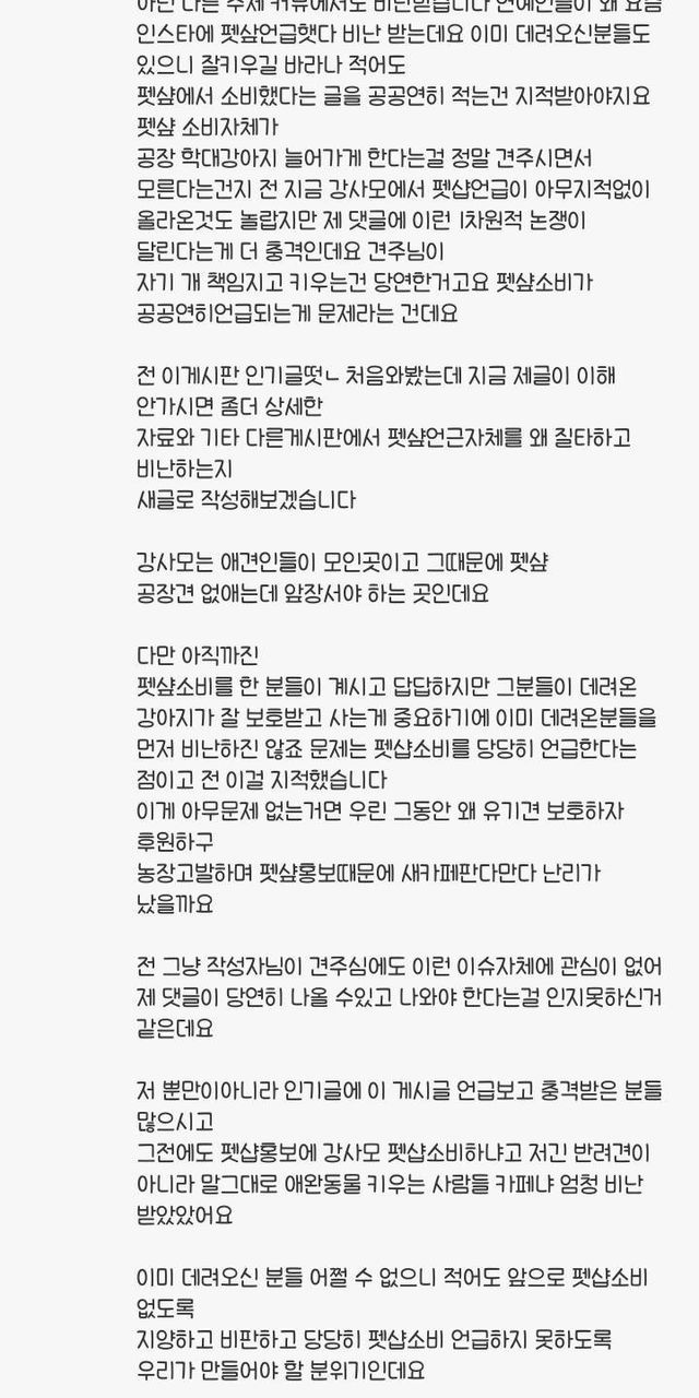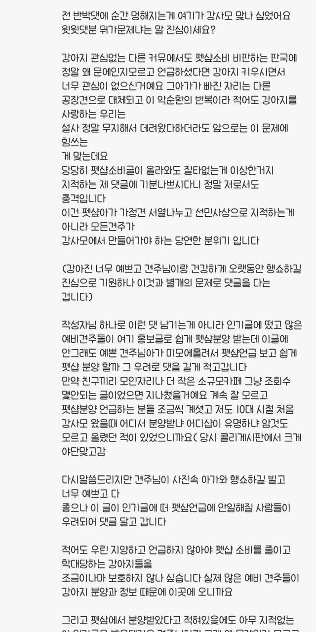 이 글을 보고 펫샵소비한 자신을 비난한다 검열하지 말고